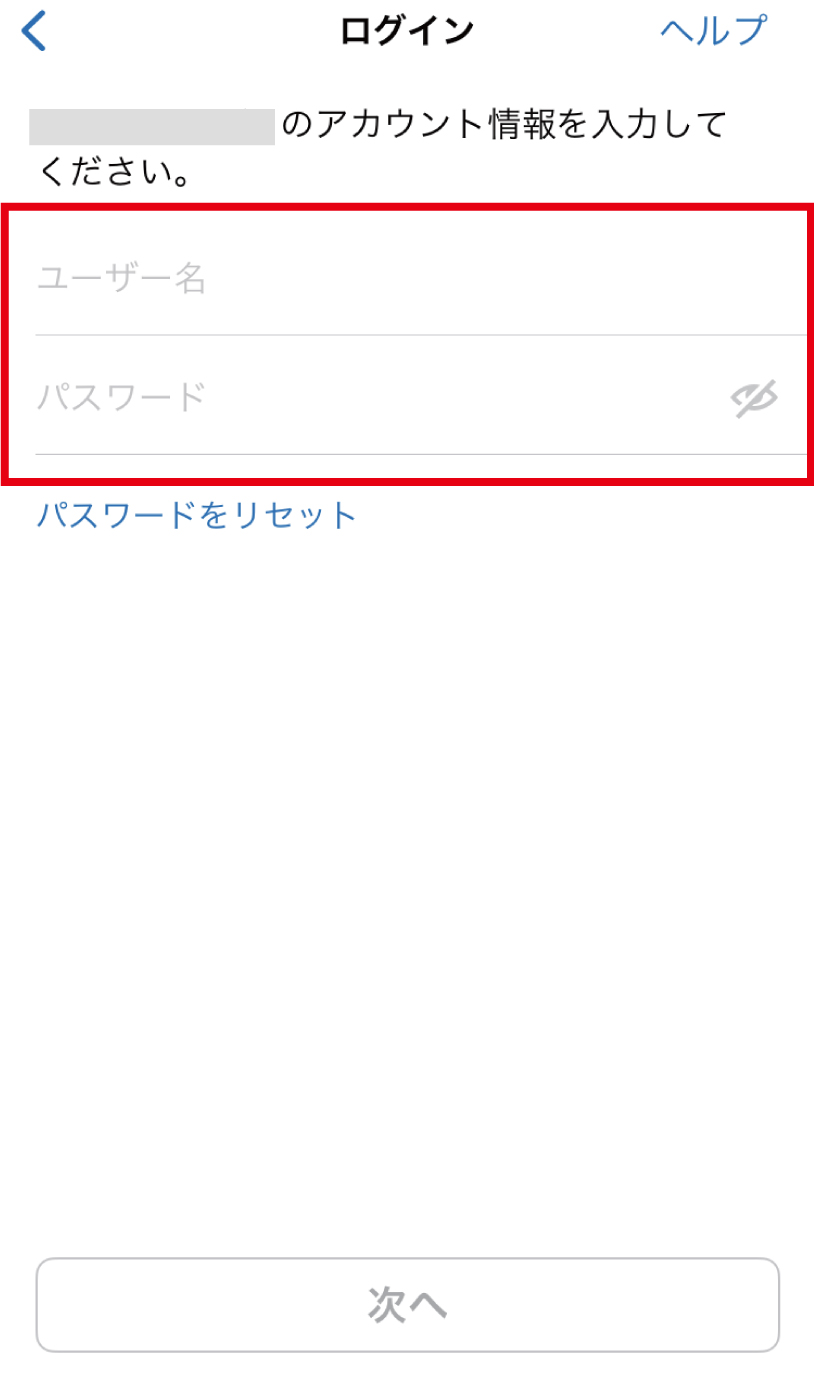ユーザー名とパスワードを入力して「次へ」を押します。